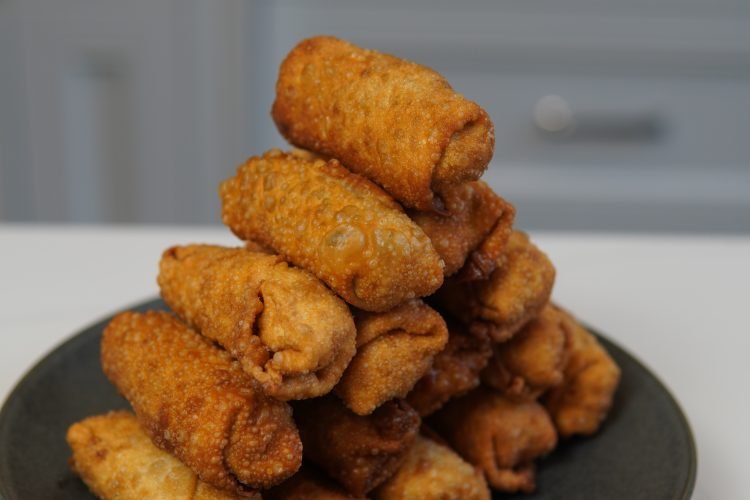 To fry the egg rolls, you need to heat vegetable oil in a deep pan until it’s 350°F. Be careful not to put too many egg rolls at once. This can make them greasy. Here’s how to fry them just right: